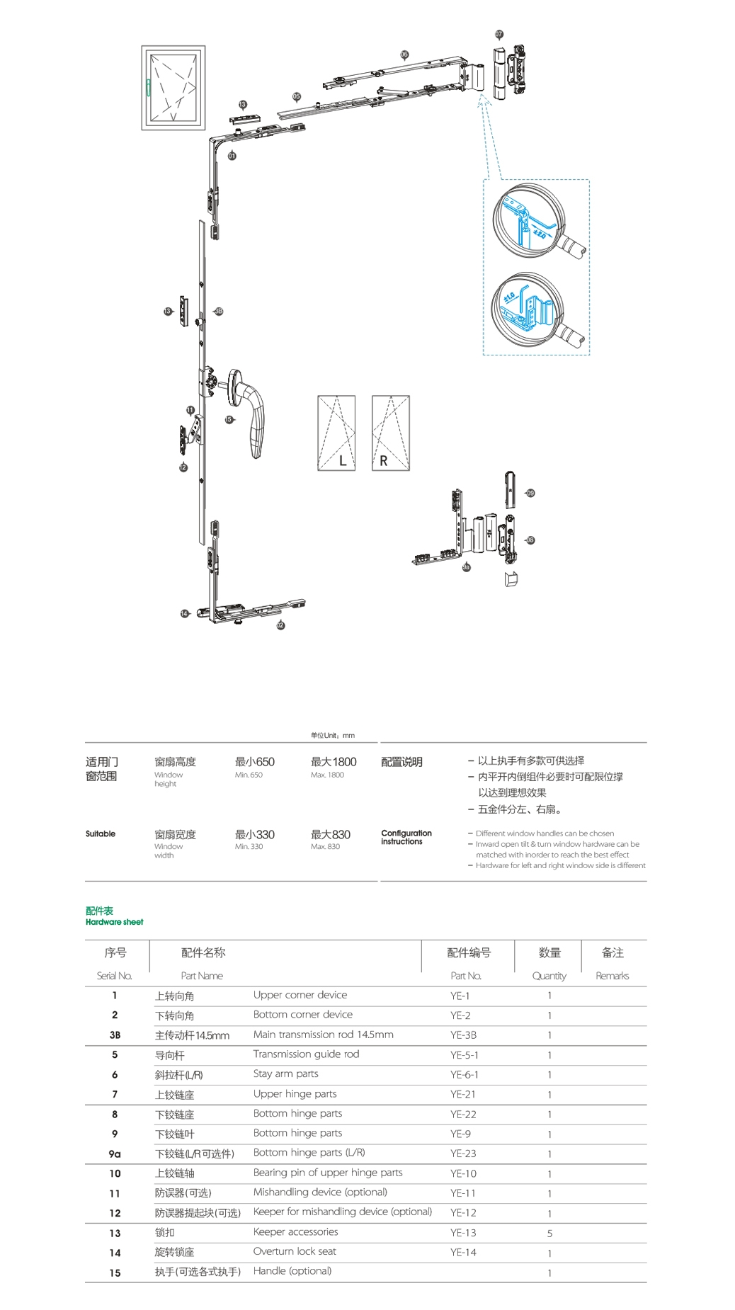 Hardware for aluminum windows and doors