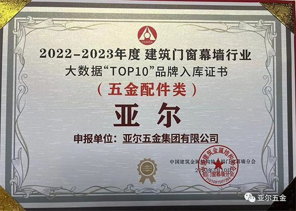 Yaer Hardware has outstanding innovation capabilities. With its dedicated research and development, high-end quality, and product, technology and service upgrades, it has outstanding product performance in Friction Stays, Hinges, Window Controls, Fire Protection, and Intelligence. In the end, it stood out in the brand selection and won the Top 10 preferred hardware brands and the Top 10 material brand storage certificate.