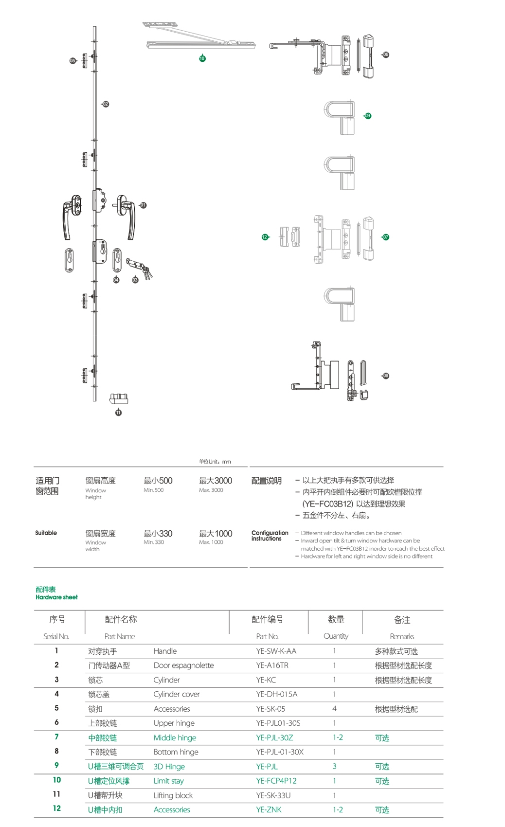 Hardware for aluminum windows and doors