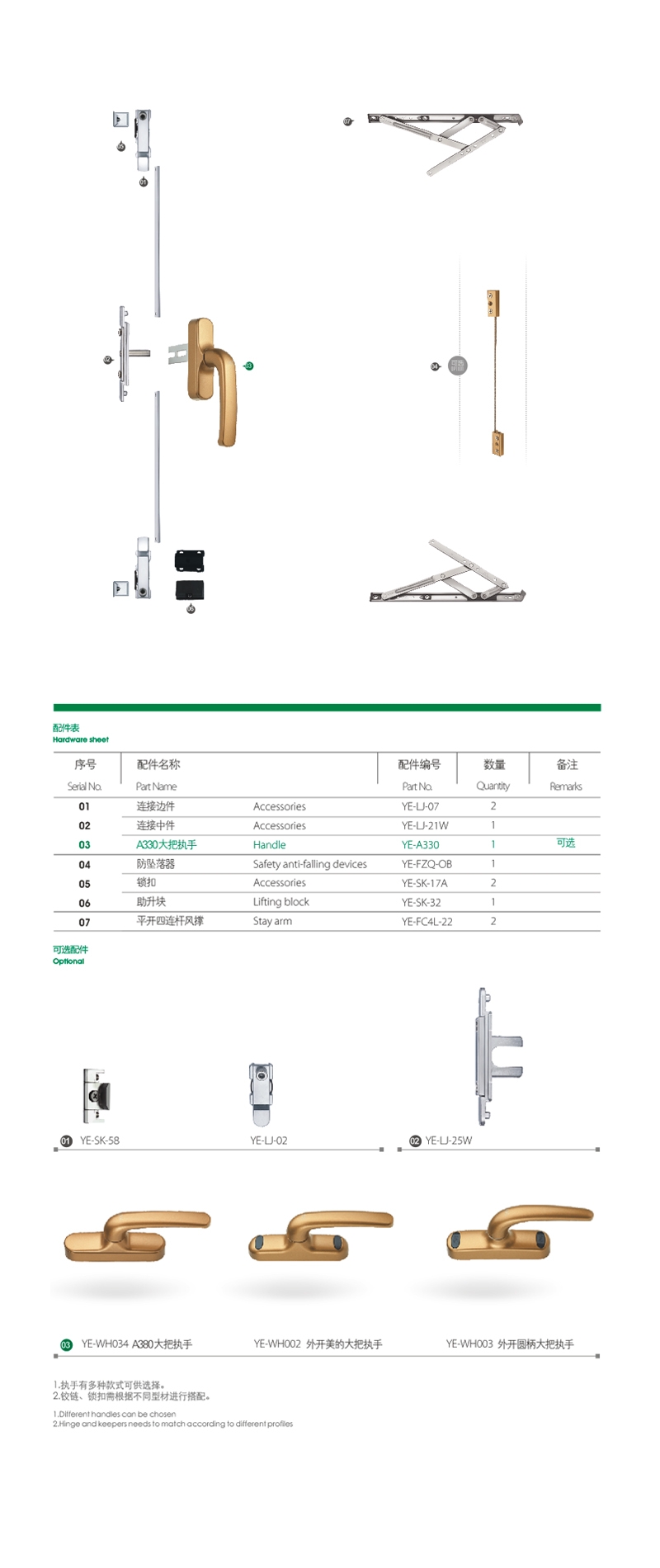 Hardware for aluminum windows and doors